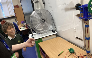 Students were tasked with designing and constructing their own wind turbines, focusing on creating efficient blades to maximize electricity production. This activity not only encouraged creativity but also prompted students to think critically about design improvements to enhance efficiency. Students experimented with different blade shapes and shared their findings with one another.